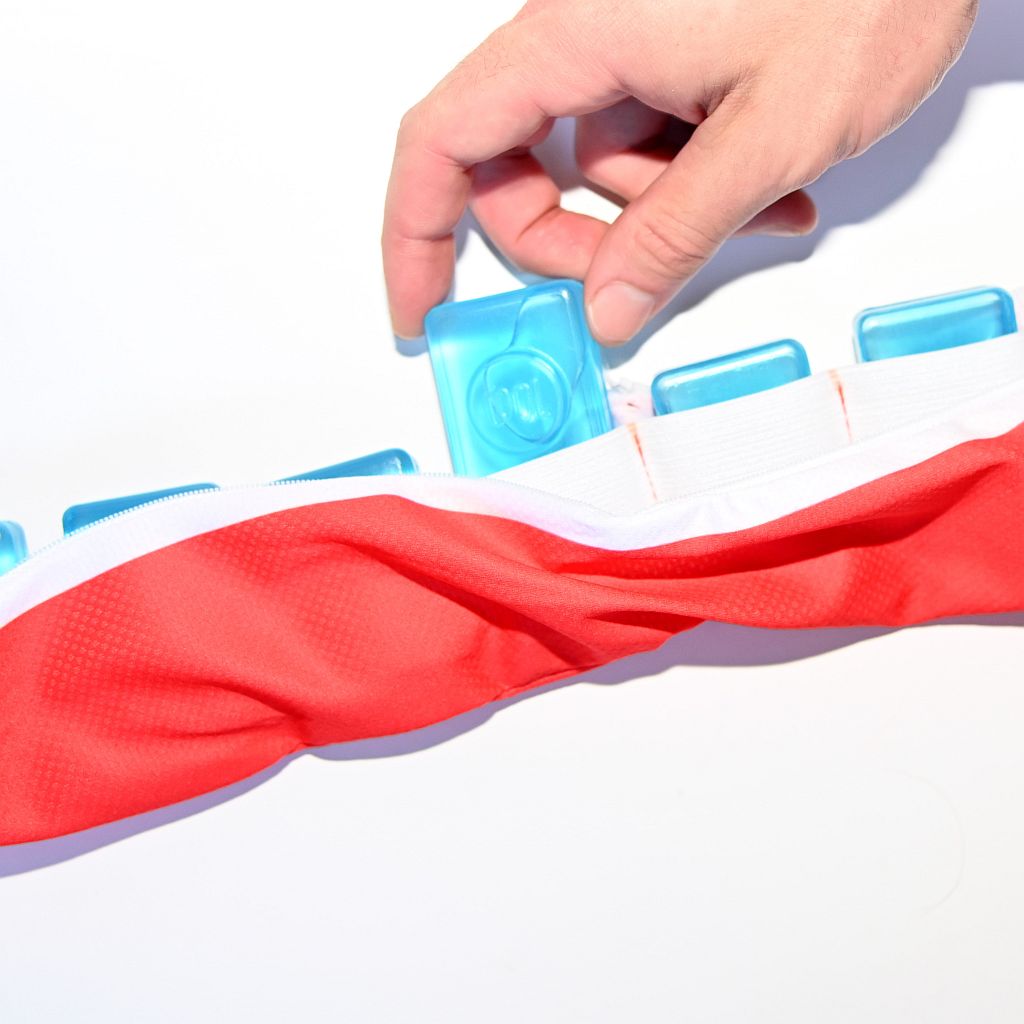 ○ Cooling fabric provides extended relief when wet with water